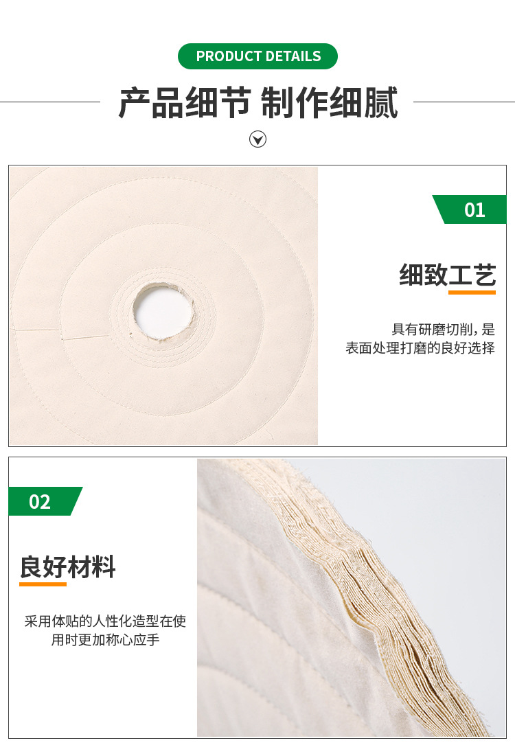 1)非縫合式整布輪。多用細(xì)軟棉布制成,宜拋光形狀復(fù)雜工件,或用于小型工件的精拋光。
