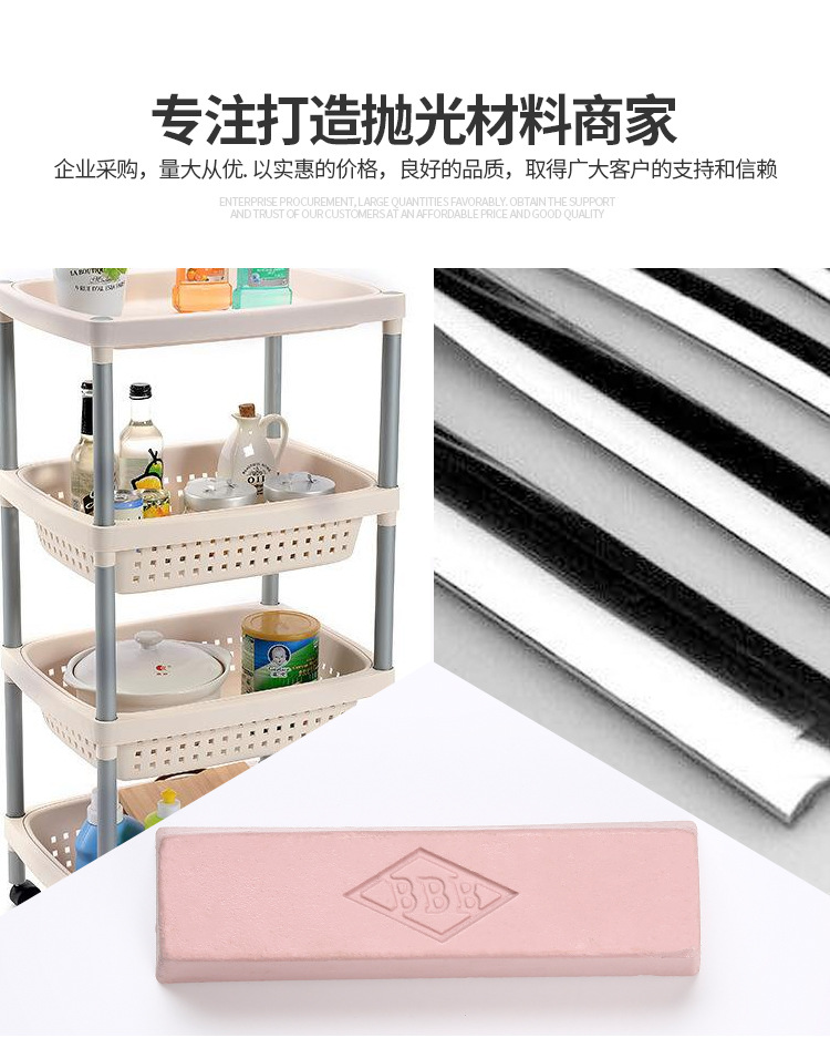 溫州華銘拋光研磨材料有限公司提供的bbb粉色拋光蠟(拋光臘)可用于金屬、不銹鋼、木雕玉石等固體打磨拋光用,可以增加金屬、不銹鋼、木雕玉石等固體光澤,保護(hù)產(chǎn)品漆膜免受潮濕、劃傷與灼傷的作用。正確地使用上拋光蠟可使產(chǎn)品更富于光澤。