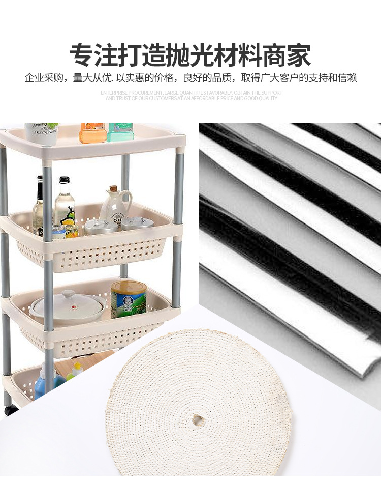麻轆:可分為油麻轆和布麻轆。麻轆采用優(yōu)良劍麻為原材料,經(jīng)再三深加工布成為一種堅硬的拋光材料,油麻轆主要用于不銹鋼制品自動拋光生線,布麻轆通常用于拋金屬制品,種類齊全,規(guī)格有直徑50mm——500mm不等